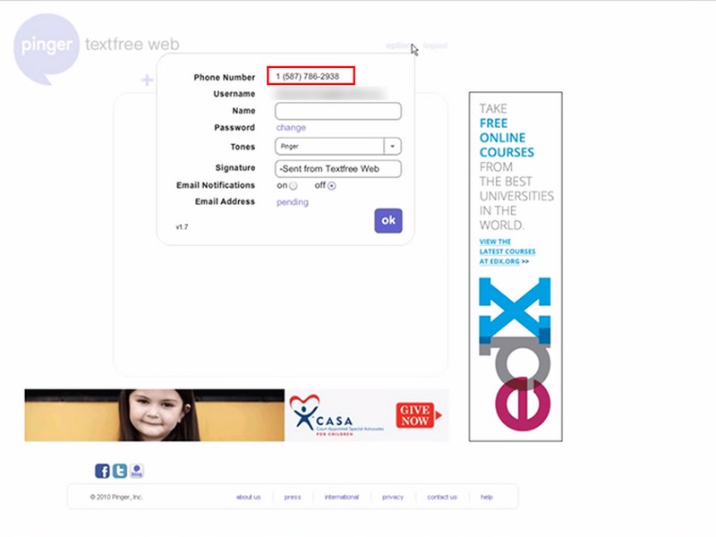 Pinger позволяет получить виртуальный номер, на который можно получать сообщения.