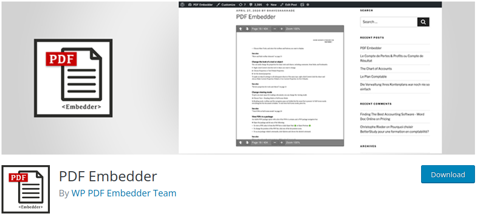 Если вам нужна сверхпростая и легкая программа для просмотра PDF-файлов в WordPress, вам может подойти Embed PDF Viewer.