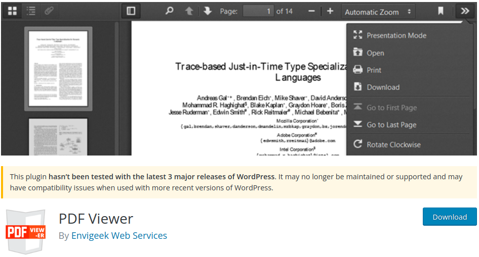 - По сравнению с дисплеями других программ просмотра PDF-файлов WordPress из этого списка, это не самое красивое.