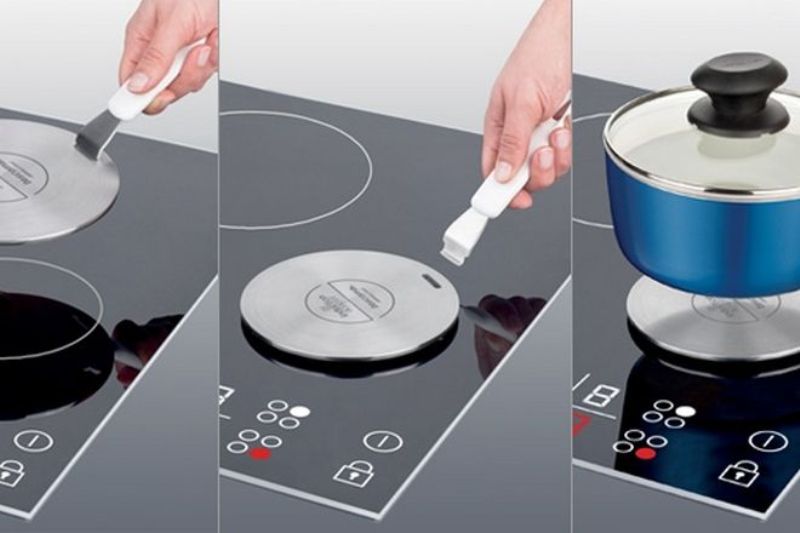 Еще один плюс индукционных плит: конфорки работают только тогда, когда на них стоит посуда. Убрали сковородку — индукция перестала работать. При этом конфорка не начнет нагревать предмет меньше определенного диаметра, даже если он обладает ферромагнитными свойствами (подробнее о них будет ниже): если вы случайно положите вилку на активную конфорку, она останется холодной.