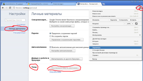 Восстановить фон по умолчанию для новых вкладок