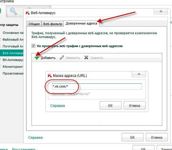 Может быть и так, что антивирусная программа, установленная на компьютере, добавила сайт Вконтакте в черный список, то есть, блокирует к нему доступ. Откройте окно антивируса, найдите там раздел «Блокировка», удалите из списка вк. Если никакие сайты вы блокировать не хотите, то снимите галочку напротив «Разрешить блокировку веб-сайтов». Потом жмите «Готово».