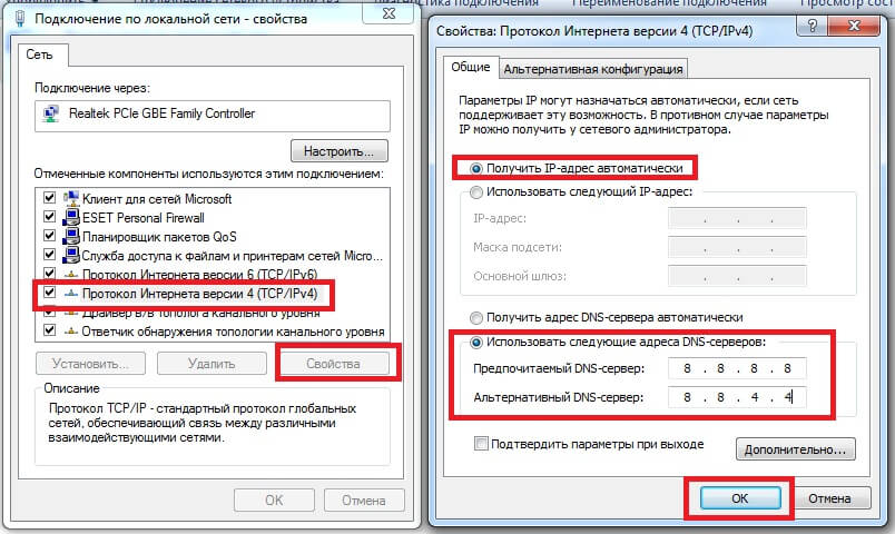 Можете еще выделить пункт IP версии 4 (TCP/IPv4) нажать на кнопку свойства, и проверить, установлено ли автоматическое получение IP и DNS-адресов.
