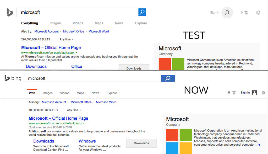 Во-первых, инженерам компании удалось избежать всех ошибок и недоработок, которые были допущены в прежних поисковых сервисах Microsoft, а во-вторых, огромный массив статистических данных, который накопился у компании за годы существования браузера Internet Explorer, позволил ее инженерам создать поисковой алгоритм, дающий пользователям действительно релевантную выдачу