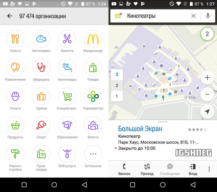 Подробный справочник организаций, оснащенный навигатором и картой, подскажет их адрес, время работы, контакты и даже отзывы пользователей.