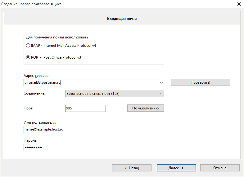 - Сервер POP3 — pop.