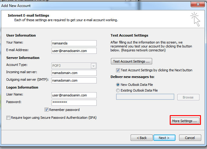 - Теперь вернитесь в окно Настройки учетной записи , щелкните только что созданную [email protected] учетную запись и обновите Имя учетной записи , добавив в конце (POP3) , чтобы мы знали, какая учетная запись что легко, затем нажмите OK .
