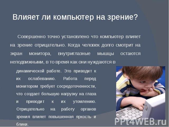 По словам доктора Трэвиса Мередита из Университета Северной Каролины, «сидеть рядом с экраном телевизора или компьютера не вредно для наших глаз. Это целый ряд других факторов, которые могут вызвать физическую усталость».