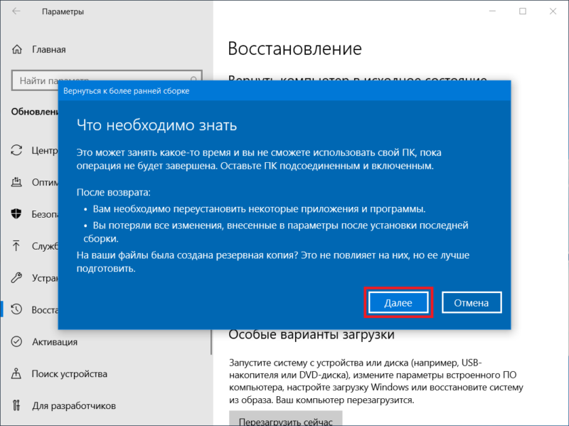 - Возврат к прошлой сборке – если недавно было установлено крупное обновление
