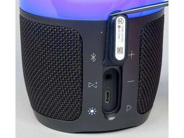 - Штекер Micro-USB подключить в соответствующее гнездо на задней панели колонки. Зачастую она прикрыта заглушкой, которую нужно подковырнуть. Ошибиться с разъемом не получится: в другой, штекер попросту не подойдет.