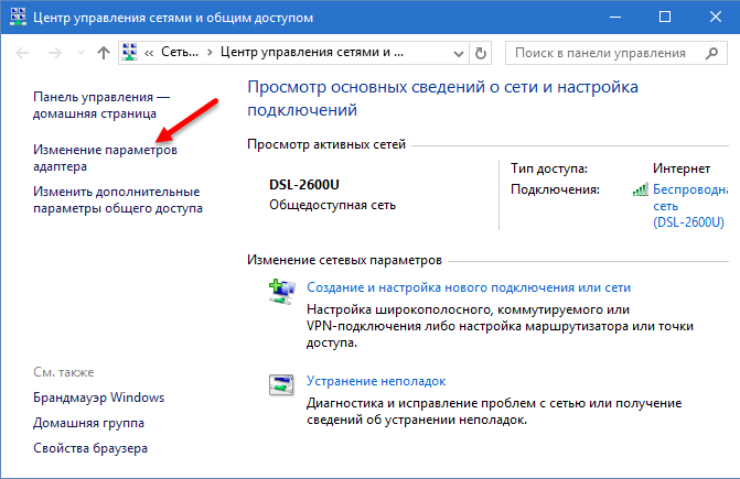 - Выбирается пункт «Центр управления сетями и общим доступом».