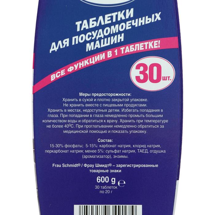 Это таблетки типа «3 в 1», которые смягчают воду (солью), удаляют следы порошка (ополаскивателем) и, собственно, моют саму посуду с помощью порошка.