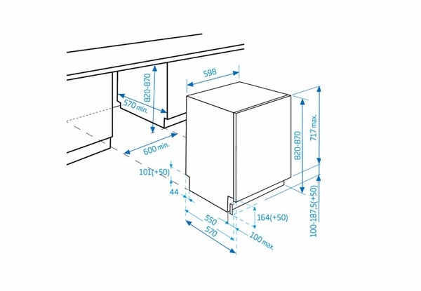 Габариты встраиваемых и частично встраиваемых посудомоечных машин