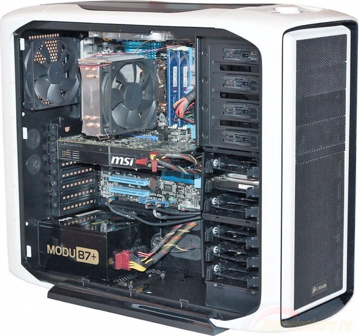 - Full-Tower выбирают далеко не все, чтобы вместить много видеокарт, сложные и массивные системы водяного охлаждения.
