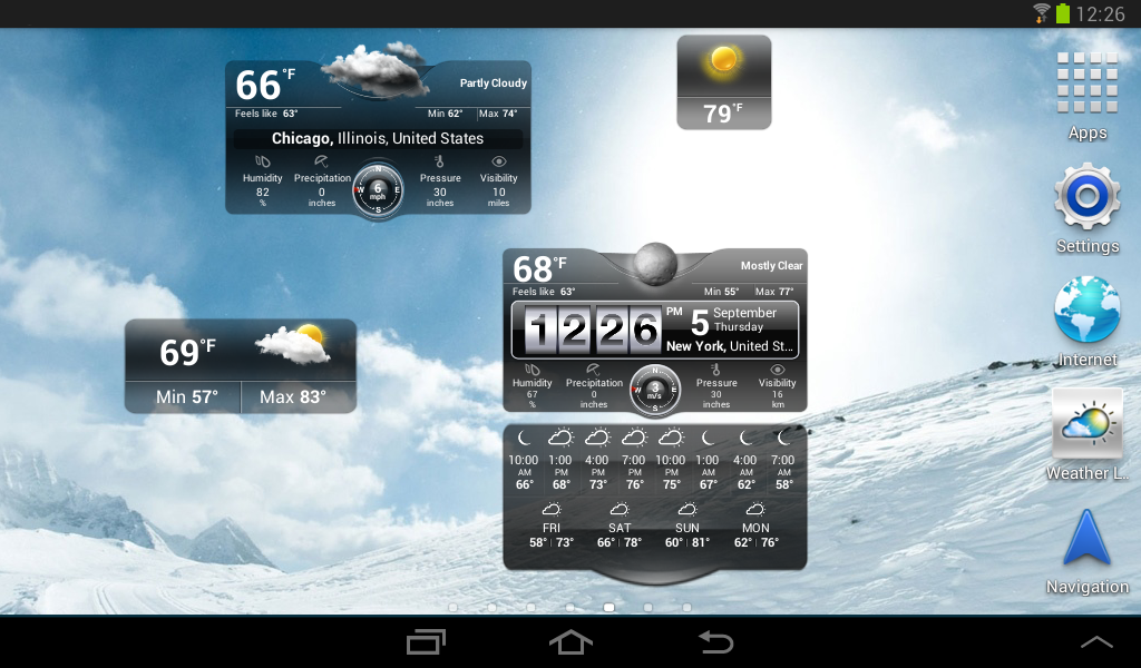 Π’Π΅ΠΏΠ΅ΡΡ Π²Π°ΠΌ ΠΏΡΠΎΡΡΠΎ Π½ΡΠΆΠ½ΠΎ Π½Π°ΠΆΠ°ΡΡ Π½Π° Π³Π°ΠΌΠ±ΡΡΠ³Π΅Ρ-ΠΌΠ΅Π½Ρ Π² Π²Π΅ΡΡ Π½Π΅ΠΌ Π»Π΅Π²ΠΎΠΌ ΡΠ³Π»Ρ ΡΠΊΡΠ°Π½Π°. Π ΡΠ°Π·Π΄Π΅Π»Π΅ Weather Π²Ρ ΡΠ²ΠΈΠ΄ΠΈΡΠ΅ Π²ΠΎΠ·ΠΌΠΎΠΆΠ½ΠΎΡΡΡ ΠΏΠ΅ΡΠ΅ΠΊΠ»ΡΡΠ΅Π½ΠΈΡ ΠΌΠ΅ΠΆΠ΄Ρ Π³ΡΠ°Π΄ΡΡΠ°ΠΌΠΈ Π€Π°ΡΠ΅Π½Π³Π΅ΠΉΡΠ° ΠΈ Π¦Π΅Π»ΡΡΠΈΡ, Π° ΡΠ°ΠΊΠΆΠ΅ Π²ΠΎΠ·ΠΌΠΎΠΆΠ½ΠΎΡΡΡ Π΄ΠΎΠ±Π°Π²ΠΈΡΡ ΠΏΠΎΠ³ΠΎΠ΄Ρ Π½Π° Π³Π»Π°Π²Π½ΡΠΉ ΡΠΊΡΠ°Π½.ΠΠ΄ΠΈΡΠ΅ Π²ΠΏΠ΅ΡΠ΅Π΄ ΠΈ ΠΊΠΎΡΠ½ΠΈΡΠ΅ΡΡ ΡΡΠΎΠ³ΠΎ, ΡΠΎΠ³Π΄Π° ΠΏΡΠΈΠ»ΠΎΠΆΠ΅Π½ΠΈΠ΅ ΠΠΎΠ³ΠΎΠ΄Π° Π±ΡΠ΄Π΅Ρ Π΄ΠΎΠ±Π°Π²Π»Π΅Π½ΠΎ Π½Π° Π²Π°Ρ Π΄ΠΎΠΌΠ°ΡΠ½ΠΈΠΉ ΡΠΊΡΠ°Π½. ΠΡ ΠΌΠΎΠΆΠ΅ΡΠ΅ ΡΠ°Π·ΠΌΠ΅ΡΡΠΈΡΡ ΡΡΠ»ΡΠΊ Π³Π΄Π΅ ΡΠ³ΠΎΠ΄Π½ΠΎ, ΠΈ ΠΎΠ½ Π²ΡΠ΅Π³Π΄Π° Π±ΡΠ΄Π΅Ρ ΠΎΡΠΊΡΡΡ Π΄Π»Ρ Π²Π°ΡΠ΅Π³ΠΎ ΠΌΠ΅ΡΡΠ½ΠΎΠ³ΠΎ ΠΏΡΠΎΠ³Π½ΠΎΠ·Π°.