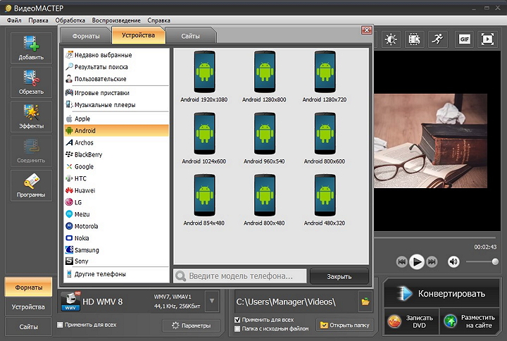 - Экспорт фото-видео в любые форматы, платформы и устройства по вашему желанию;
