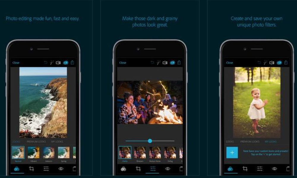 Adobe Photoshop Express, также известное как самое первое автономное приложение Adobe, имеет множество функций и инструментов. Это приложение имеет медиатеку с возможностью просмотра и загрузки фотографий с телефона без подключения к Интернету. С помощью этого приложения вы можете редактировать фотографии и видео и делиться ими с другими в социальных сетях или сохранять их в своей библиотеке фотографий.