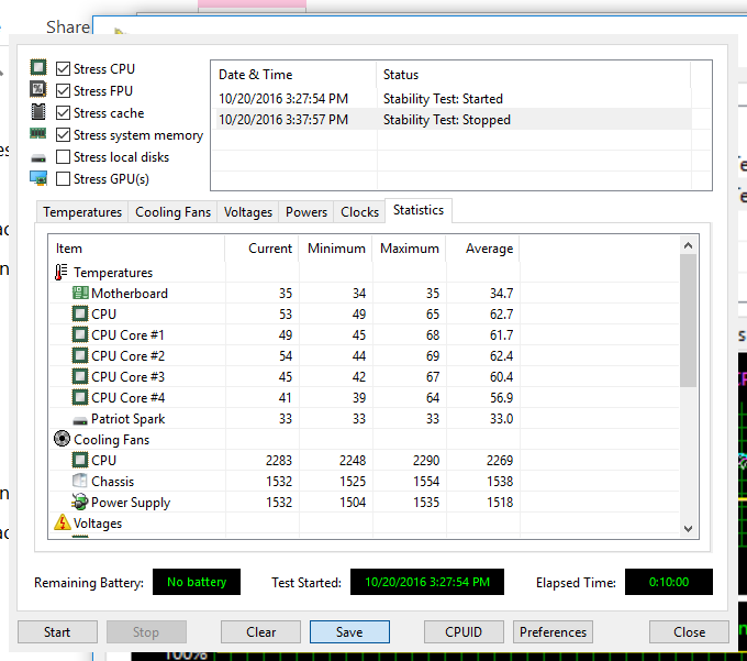 - Запустить базовый стресс-тест процессора.