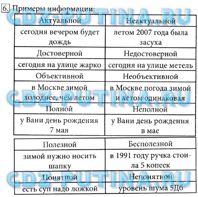 ГДЗ по информатике 8 класс, Босова, рабочая тетрадь, упр. 6. Приведите примеры информации – Рамблер/классИнтересные вопросы
