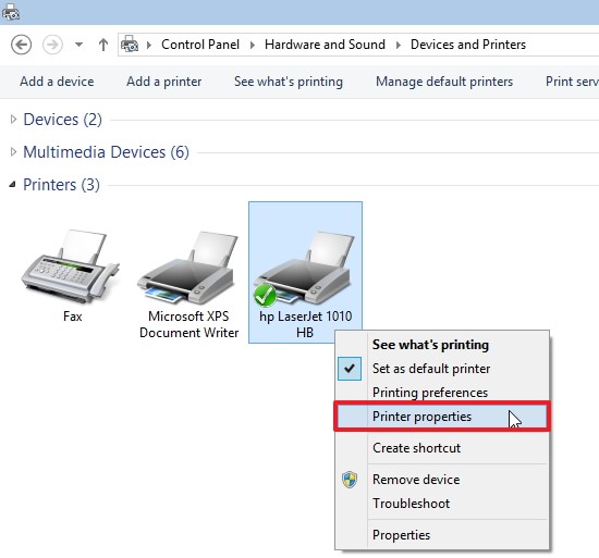 - Щелкните правой кнопкой мыши значок принтера. Выберите Свойства принтера .