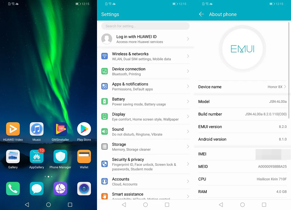 0 Oreo, 7.0 Nougat, 6.0 Marshmallow), пользовательский интерфейс Huawei Emotion