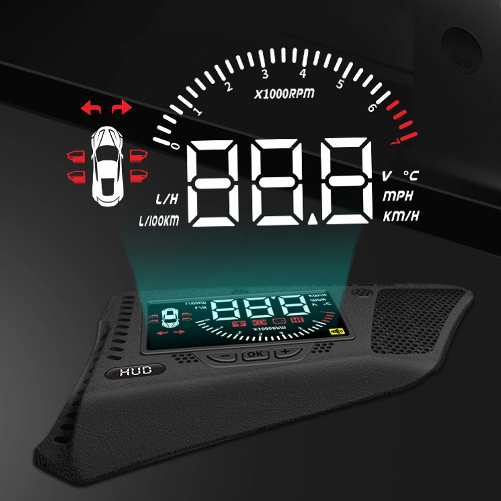 Автомобильный проектор OBD HUD 5,5 дюйма. Представленный проектор скорости на лобовое стекло алиэкспресс оснащен функцией Plug and Play, позволяющей автоматически адаптироваться к любому типу автомобиля с OBDII. При определенном отношении скорости двигателя и автомобиля устройство будет напоминать водителю о необходимости экономии топлива. Автомобильный aliexpress проектор на лобовое стекло автоматически подстраивается к времени суток, меняя яркость дисплея в зависимости от освещения. Помимо дисплея, в комплекте идет кабель, нескользящий коврик и светоотражающая пленка.