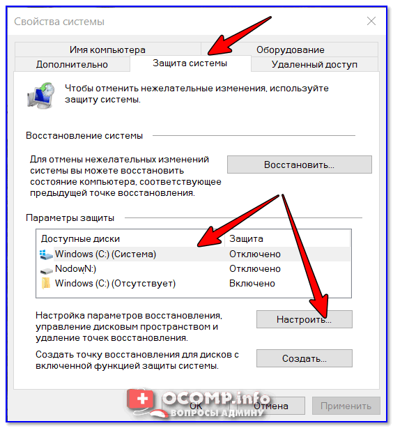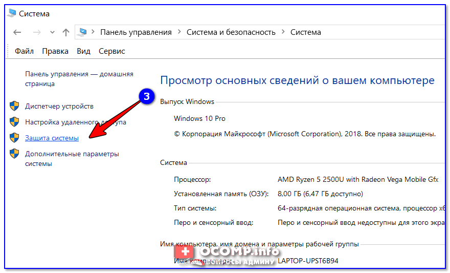 И так, чтобы настроить место под точки восстановления, откройте: и откройте вкладку (скрины ниже в помощь) .