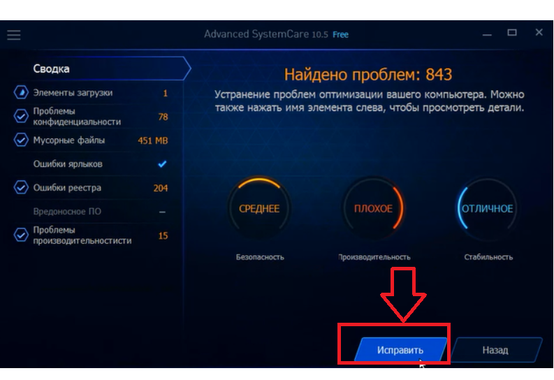 В один клик программа проведет анализ и покажет состояния вашего ПК.
