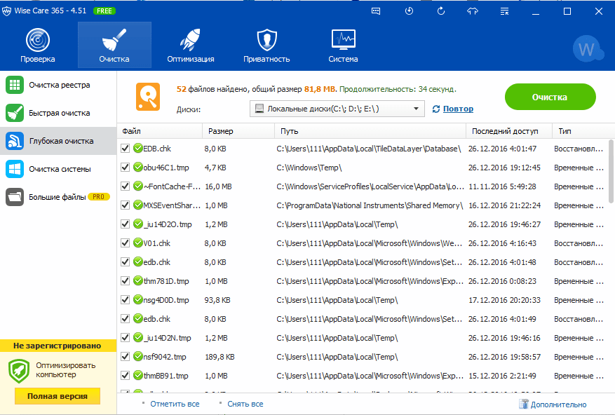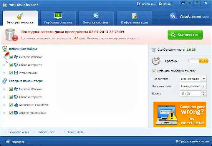 Основным достоинством этого «чистильщика» является то, что он находит мусор, который пропускает большинство подобных программ.