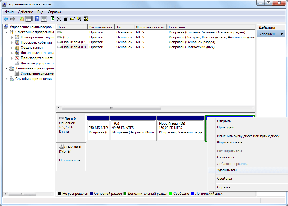 После доступа к управлению дисками в Windows 7 вам просто нужно щелкнуть правой кнопкой мыши раздел, который вы хотите удалить, и выбрать опцию «Удалить том». После удаления раздела в Windows 7 он будет отображаться как нераспределенный том в разделе «Управление дисками».