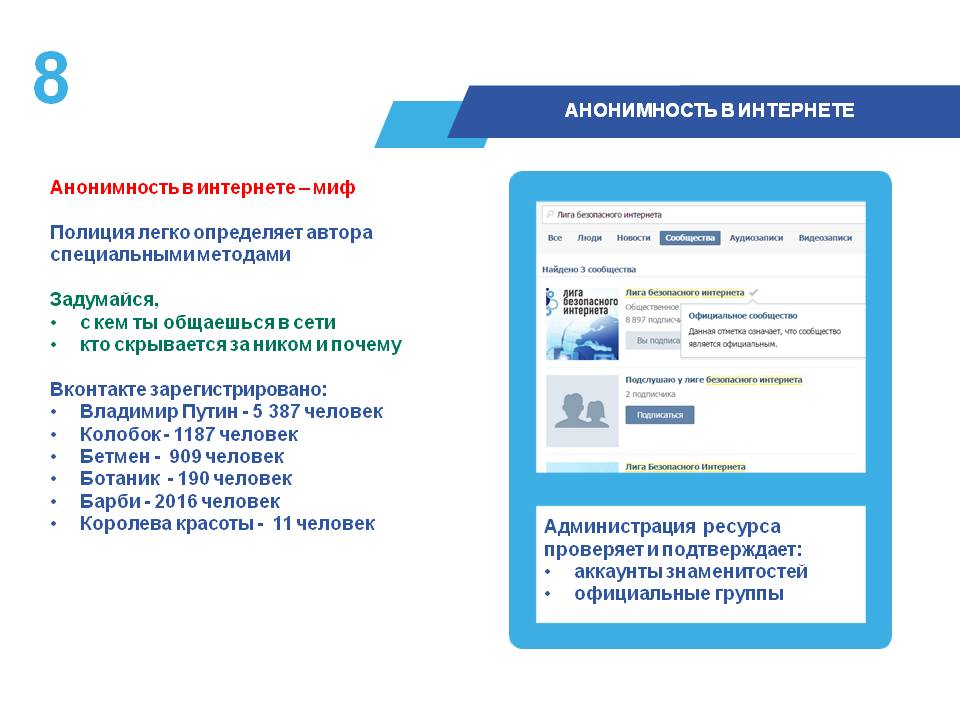 - Не размещайте никакие свои персональные данные в Интернете.