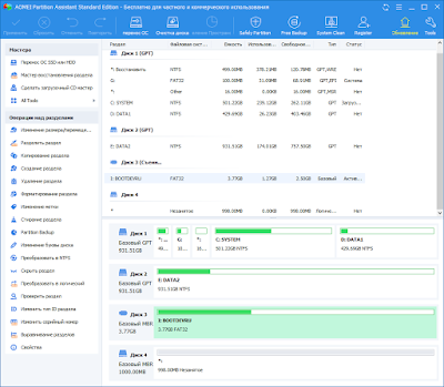 В этой статье мы рассмотрим программу AOMEI Partition Assistant Standard, установленную на компьютере, другие приложения (Acronis Disk Director, EASEUS Partition Master) будут использованы с загрузочного носителя, без установки программ на ПК.