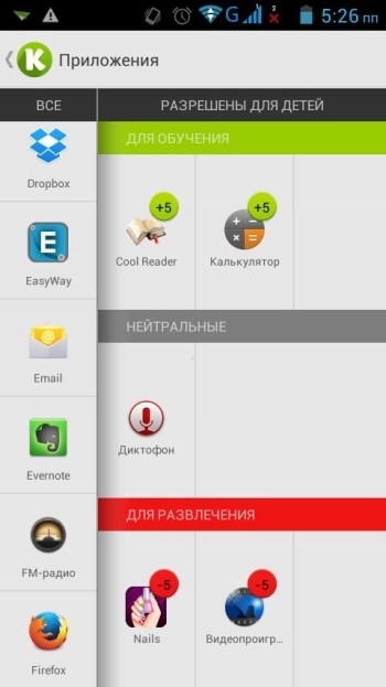 Именно такой подход практикуется в приложении KidRead. Это — тот же детский лончер, но с таймером. Все приложения, которые запускает ребенок, разделены на игровые, обучающие и нейтральные. То, к какой категории отнести каждую установленную на устройстве программу, решают родители.