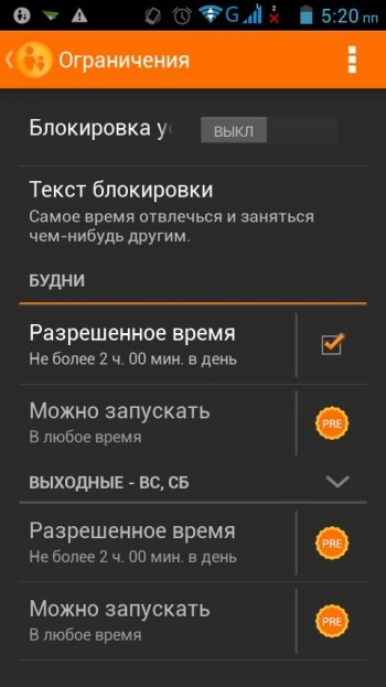 Премиум-пользователи также могут установить отдельные ограничения в зависимости от дней недели, блокировать работу в определенное время (скажем, в те часы, когда нужно выполнять домашнее задание или когда ребенок в школе). Текст, который будет выводиться на экране блокировки, может быть любым — тут все зависит от чувства юмора и фантазии родителя.