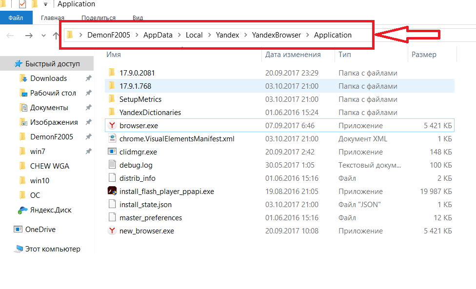 C:\Users\<имя пользователя>\AppData\Local\Yandex\YandexBrowser\Application