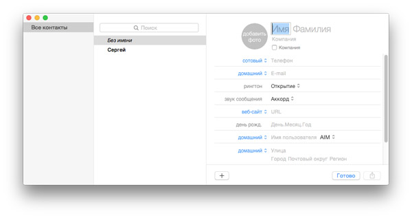 На Mac OS X механизм создания нового контакта немного отличается. Для создания контакта на яблочной платформе нужно: