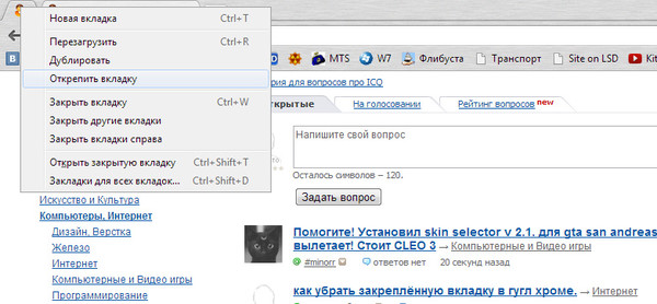 Почему это происходит? Как избавиться от закрепленных вкладок?