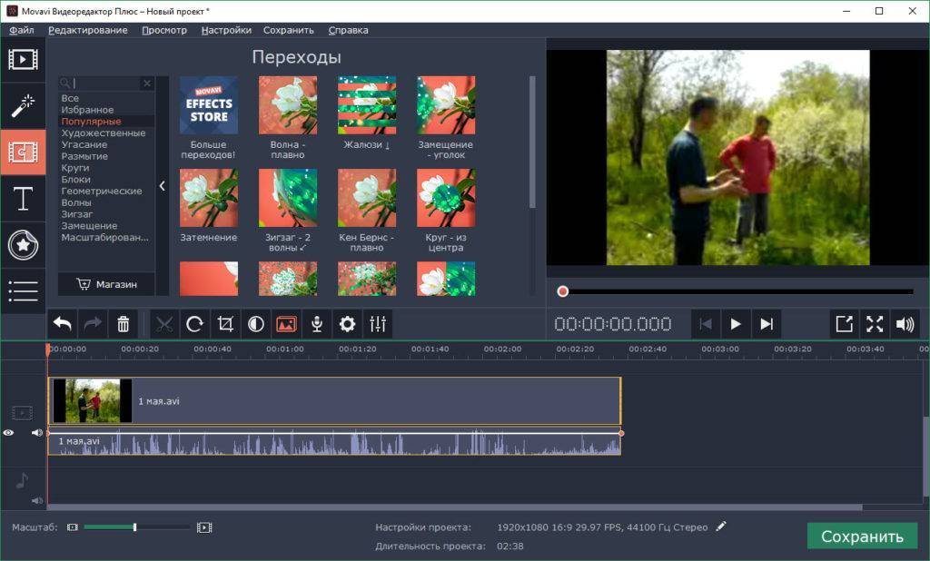 * Бесплатная версия Movavi Video Editor имеет следующие ограничения: 7-дневный пробный период, водяной знак на выходных видео и, если вы сохраняете проект в виде аудиофайла, возможность сохранить только половину длина звука.
