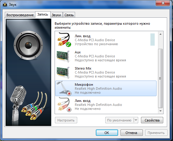 - Микрофон может быть не подключен к компьютеру.