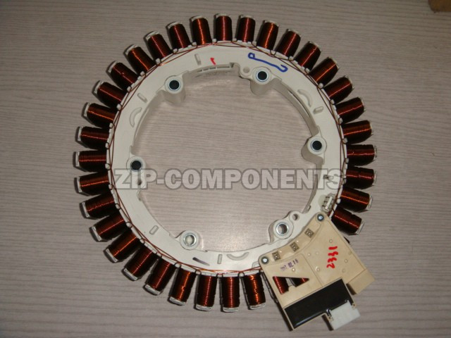 - 1. Асинхронные – сегодня их делают компактными на 3 фазы с возможностью регулирования числа оборотов. Состоят из неподвижной части – статора и вращающейся – ротора. Устанавливают в простых бюджетных моделях СМА с приводным ремнем.