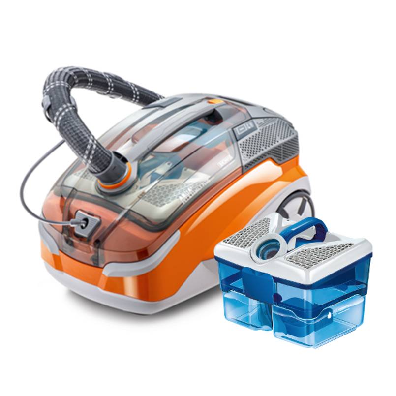 Моющий пылесос для сухой и влажной уборки, а также сбора воды. Без мешка. Без падения мощности. С уникальной системой фильтрации Aqua-Box, которая не только очищает, но и увлажняет воздух в доме