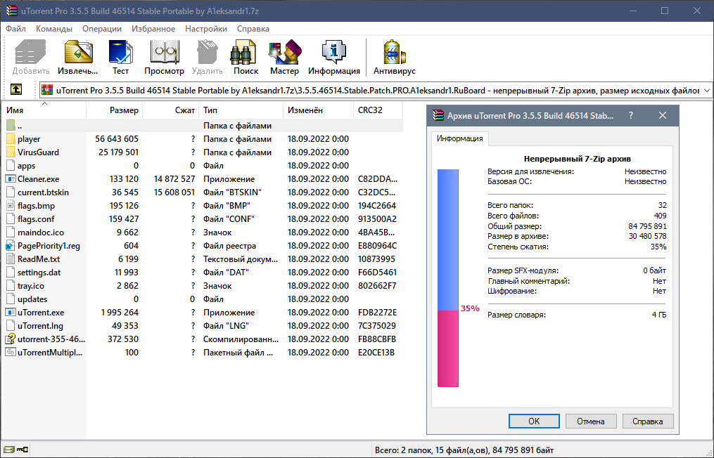 - Надежное шифрование AES-256 в форматах 7z и ZIP