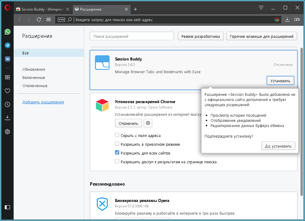 Появится последний запрос, подтверждающий добавление расширения.