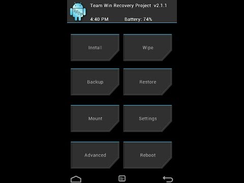TWRP — сокращение Team Win Recovery Project. Представляет собой продуманную и улучшенную альтернативу CWM. Для ввода команд изначально используется сенсорное управление. А выполненные в виде кнопок, пункты меню, способствуют удобной и простой навигации.