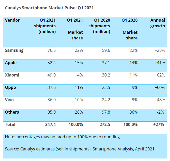 На втором месте Samsung Galaxy: S20, S20+, Ultra с более чем 28 миллионами проданных. И снова на третьем месте Apple с iPhone SE второго поколения и более чем 24 миллионами проданных единиц. Первые шесть позиций среди самых продаваемых телефонов попеременно занимают Apple и Samsung. На седьмом месте Xiaomi Redmi Note 9.Pro, продано более 15 миллионов единиц по всему миру в 2020 году.