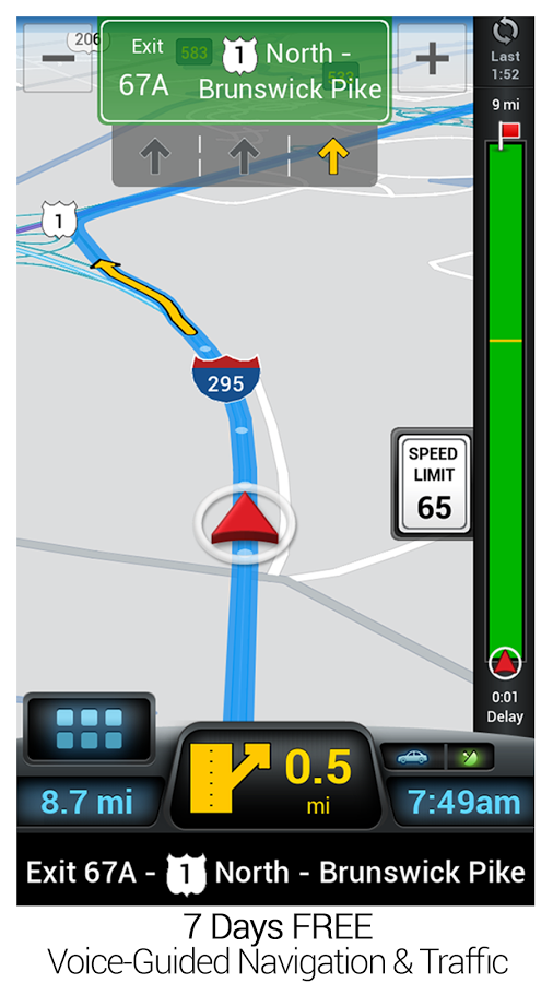 Программа легко пойдет на любом смартфоне, так как требований к железу практически нет. Есть полная информация о состоянии на дороге, а также такие полезные функции как показ прогноза погоды, знаки ограничения скорости, стоимость бензина, время до прибытия в пункт назначения. Навигатор без интернета на Андроид строит маршруты в режиме оффлайн. Пользователь может переключаться между двухмерным и трехмерным режимами.