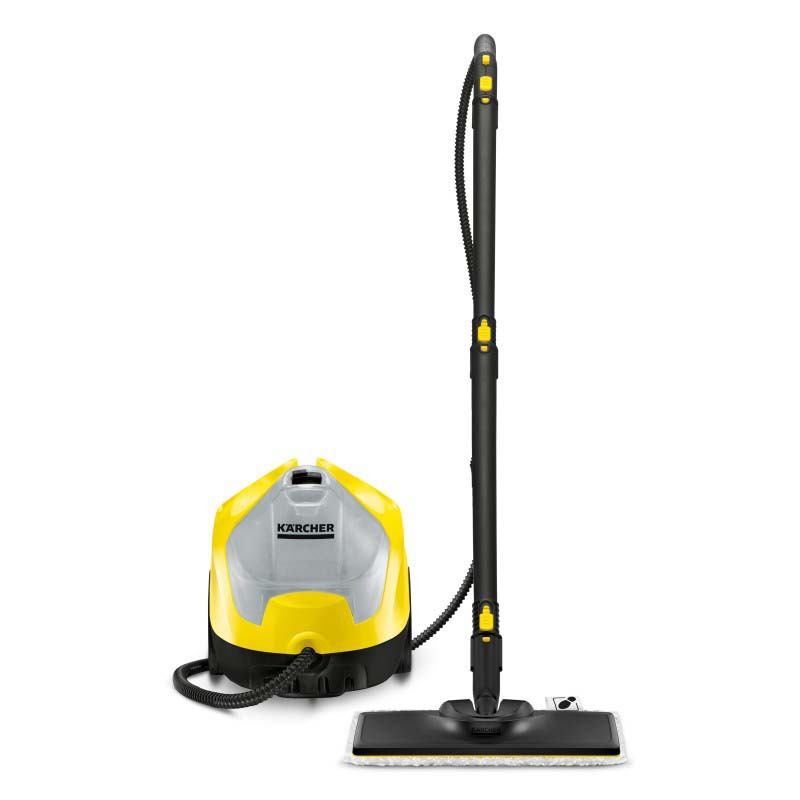 Напольный пароочиститель Karcher мощностью 1500 Вт и паровым ударом 40 граммов в минуту от американского бренда-производителя бытовой техники. Подойдёт как для ежедневного наведения порядка, так и для генеральной уборки в разных по площади помещениях. Двухступенчатый регулятор подачи пара расположен на ручке устройства.