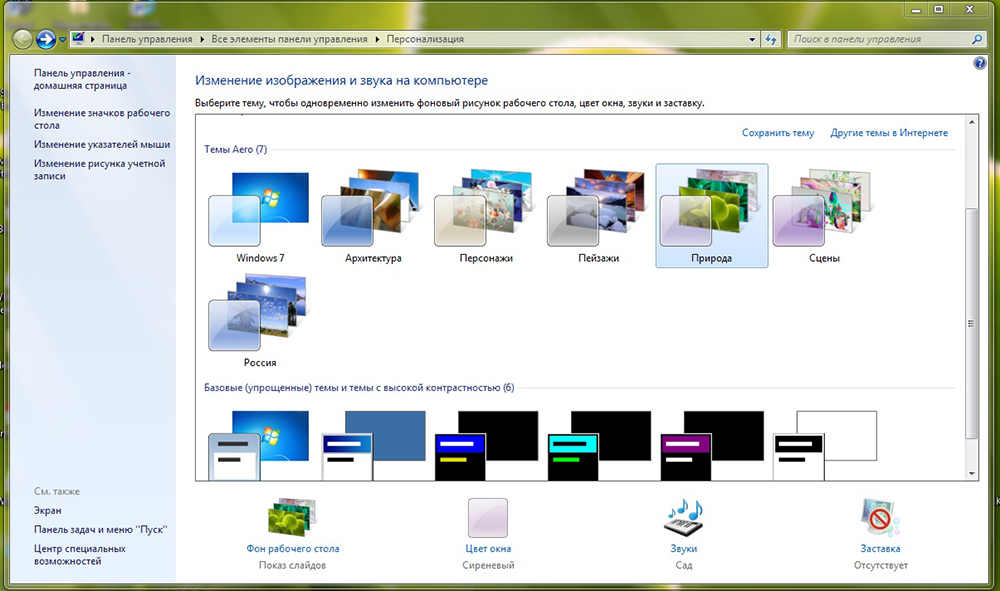 - В меню с левой стороны жмём на «Изменение значков рабочего стола».«Изменение значков рабочего стола» находится на левой панели окна