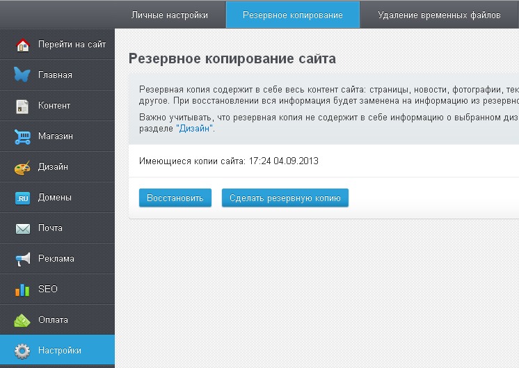Все подробности в следующих уроках: «Как сделать бэкап (резервное копирование)» и «Резервное копирование в 6 кликов»