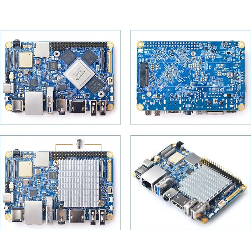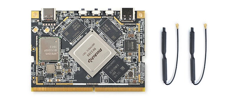 Комплект платы RK3399 Plus (набор) поставляется хорошо упакованным со всеми необходимыми элементами, такими как две антенны WIFI, антенные кабели, адаптер питания, хорошо спроектированный радиатор, плата модуля USB-UART (CP2104).